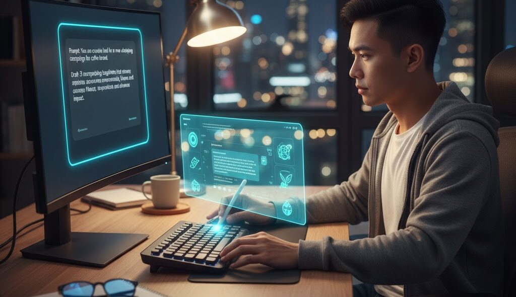 📷 Imagem sugerida: profissional trabalhando tranquilo com apoio digital ao lado.